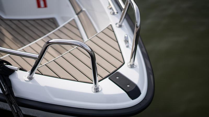 Avotila on käytännöllinen ja turvallinen: suurten ja selkeiden astinpintojen ansiosta veneeseen on helppoa nousta ja avotilassa on helppo liikkua. Lisää turvallisuutta ja tyylikkyyttä tuo pitävä ja hyvännäköinen Softdeck-lattiamateriaali (lisävaruste). Suojaavan tuulilasin ympärillä on tyylikkäät ja tukevat mustat kaiteet, mikä tuo lisää turvallisuutta ja viimeistelee näyttävän yleisilmeen.