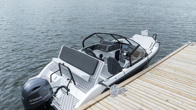 Sulavalinjainen Cross 55 BR huokuu monikäyttöisyyttä: takaistuimen selkänoja voidaan irrottaa kätevästi, kun peräkannen tasoa halutaan käyttää kalastukseen tai auringosta nauttimiseen, väljät tilat mahdollistavat helpon tavaroiden kuljetuksen ja kokonaan uuden rungon leveys tekee veneestä tilavan ja vakaan. Uuteen Cross-tyyliin kuuluvat myös tyylikkäät mustat tuulilasin karmit, kaiteet, kahvat ja knaapit.