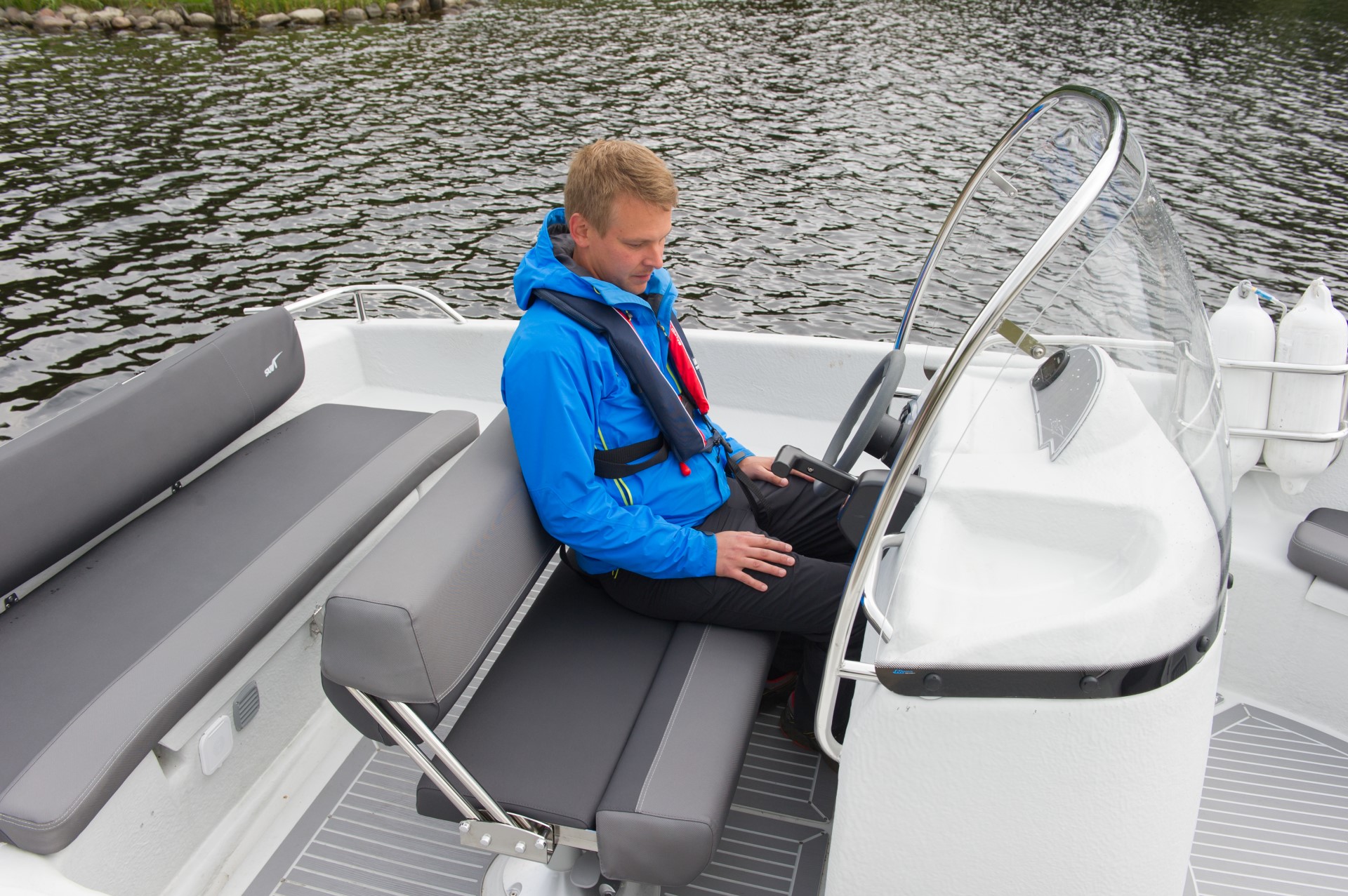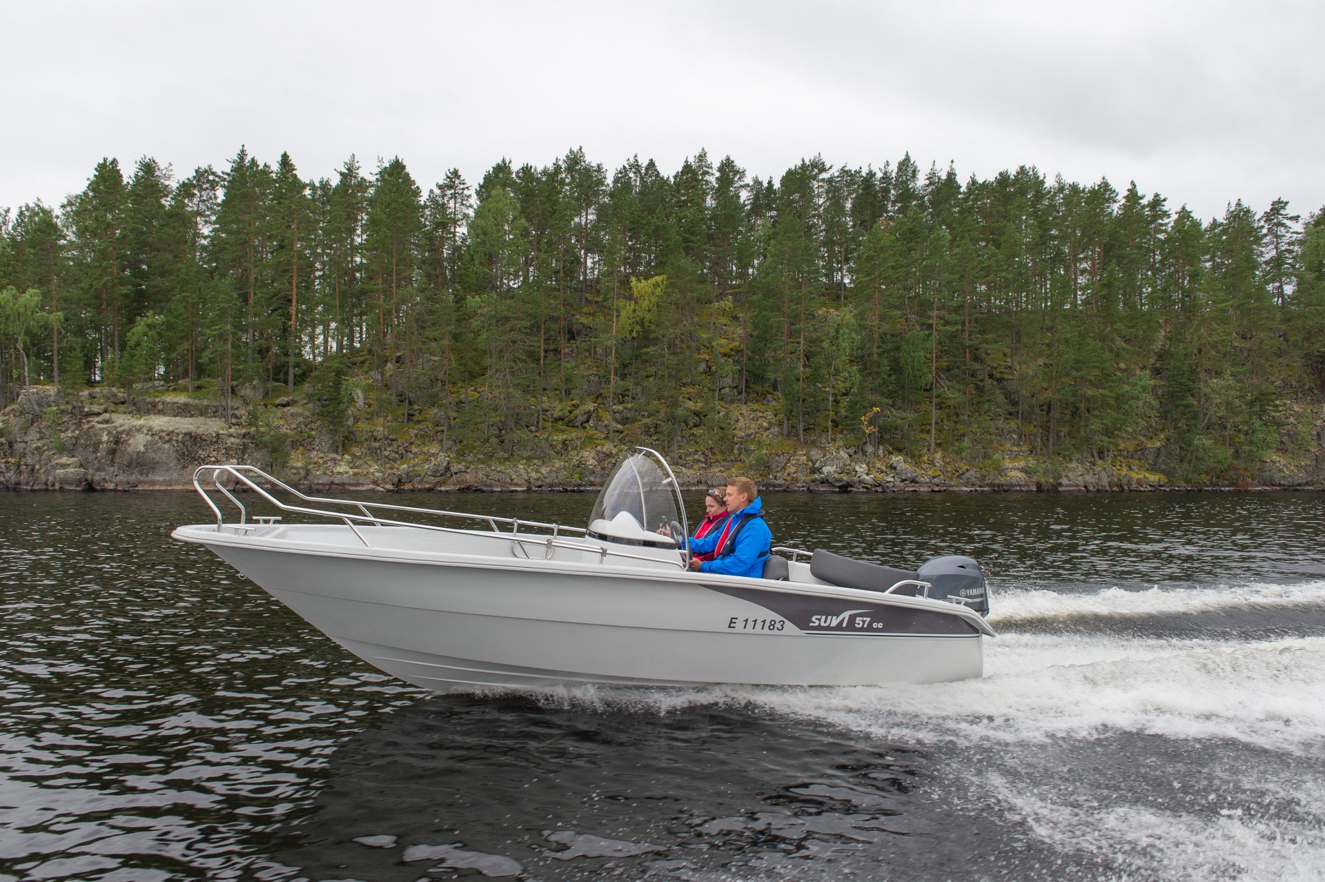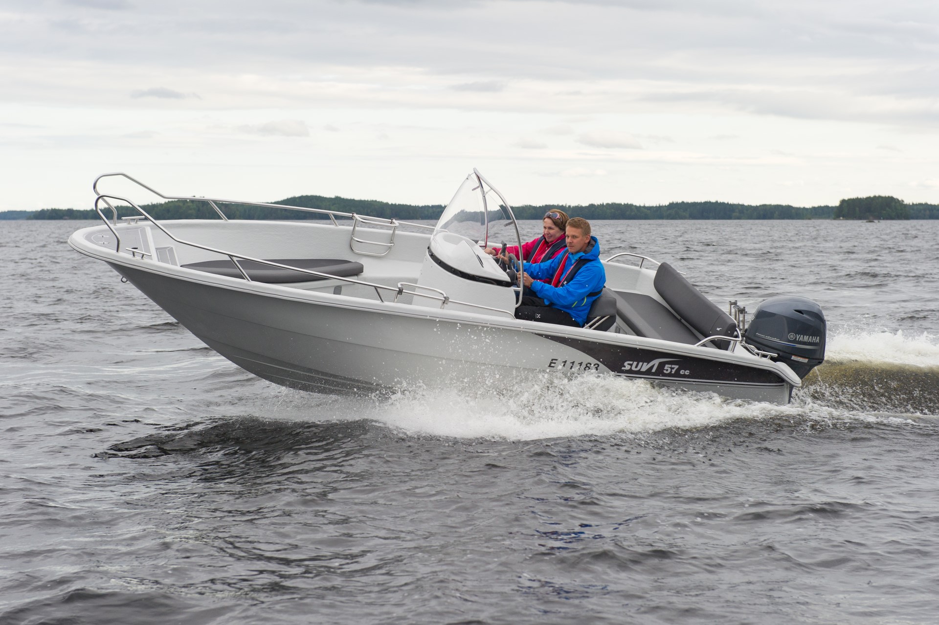 Leveällä keskipulpetilla varustettu Suvi 57 CC Fisher soveltuu mökkeilyyn, kalastukseen tai yhteysveneeksi