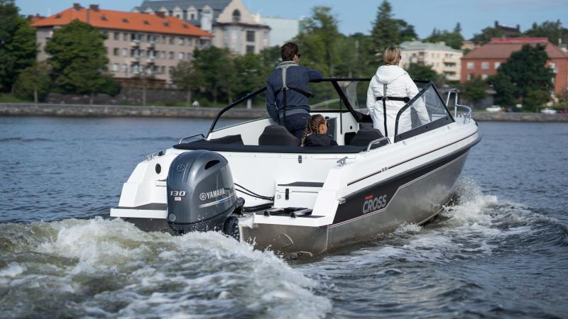 Tällä veneellä toteutat pidemmätkin retket sen ominaisuuksien ansiosta. Veneen erinomainen pohjaratkaisu on käytännöllinen ja tuo myös hieman luksusta ja helppoutta veneilyyn. Avotilan iso muhkea U-sohva on tyylikäs ja tarjoaa kaikille matkustajille mukavat oltavat. Veneessä on myös paljon säilytystilaa, joten kaikki retkitarvikkeet ja eväät kulkevat kätevästi mukana. Monipuolisen retkiveneen alta löytyy myös pilkahdus sporttisuutta Yamahan F150-moottorilla, jolloin veneen vauhti voi nousta jopa 42 solmuun. Cross 62 BR:ssä on lujatekoinen alumiinirunko ja mukava lasikuitukansi, joiden ansiosta vene on sekä kestävä että tyylikäs. Tällä veneellä voit lähteä myös avoimille vesille, sillä se on vankkarakenteinen ja tarjoaa erinomaiset ajo-ominaisuudet.