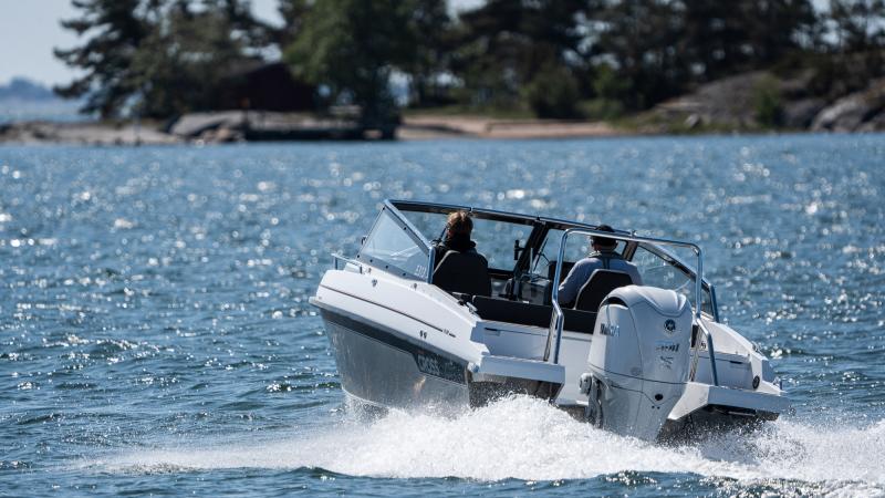Cross 75 BR on mahdollista saada sekä kestävällä alumiinikannella että mukavalla Softdeck-kansimateriaalilla, joka ei ole märkänäkään liukas. Ruhtinaallinen 300 litran bensatankki mahdollistaa pidemmätkin veneretket ilman tarvetta välitankkauksille.