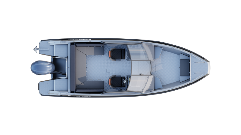 U-mallinen, tilava takapenkki on vakiovaruste.Vakiovarusteisiin kuuluvat myös mm. tilttiratti ja trimmilevyt joystick-ohjauksella, kansivalot ja avaimeton käynnistys. Lattia on liukuestekuvioitua alumiinia, kaiteet, knaapit ja muu kansiheloitus ruostumatonta terästä. Lisäksi lisävarusteena on saatavilla istuinten offshore-joustojalat erillisenä tehdasoptiona. Tehdasasenteisena lisävarusteena on saatavana myös peräkuomu, joka kiinittyy tuulilasiin näppärästi vetoketjulla. Säilytystä varten on saatavilla erilliset satamakuomut sekä keulaan että perään.