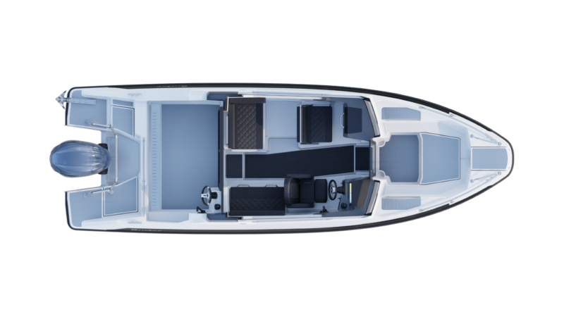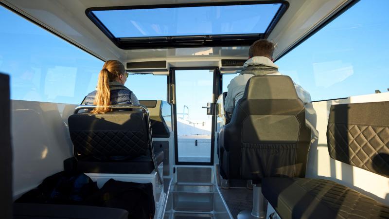 Veneeseen on helppo nousta väljien kulkuväylien ja tukevien kaiteiden ansiosta sekä keulasta että perästä. Lattiapinnat sekä sisällä että ulkotiloissa on päällystetty liukuestekuvioidulla alumiinilevyllä. Kulkua keulasta helpottavat tuplakaiteet, perässä pitkälle moottorin viereen ulottuvalle uimatasolle on helppo siirtyä avotilan oikeaan peräkulmaan sijoitetun portin kautta. Valoisassa kabiinissa on istumapaikat kuudelle hengelle, takaosan suojaisaan avotilaan saa lisäksi klaffipenkit kahdelle. Avotilan voi varustaa myös lisävarusteena saatavalla ulko-ohjauspisteellä, josta venettä on helppo hallita yksin ajettaessa tai kalastettaessa. Matkustamon avaruutta korostaa valtavien sivuikkunoiden lisäksi myös suuri, täysleveä avattava kattoikkuna.