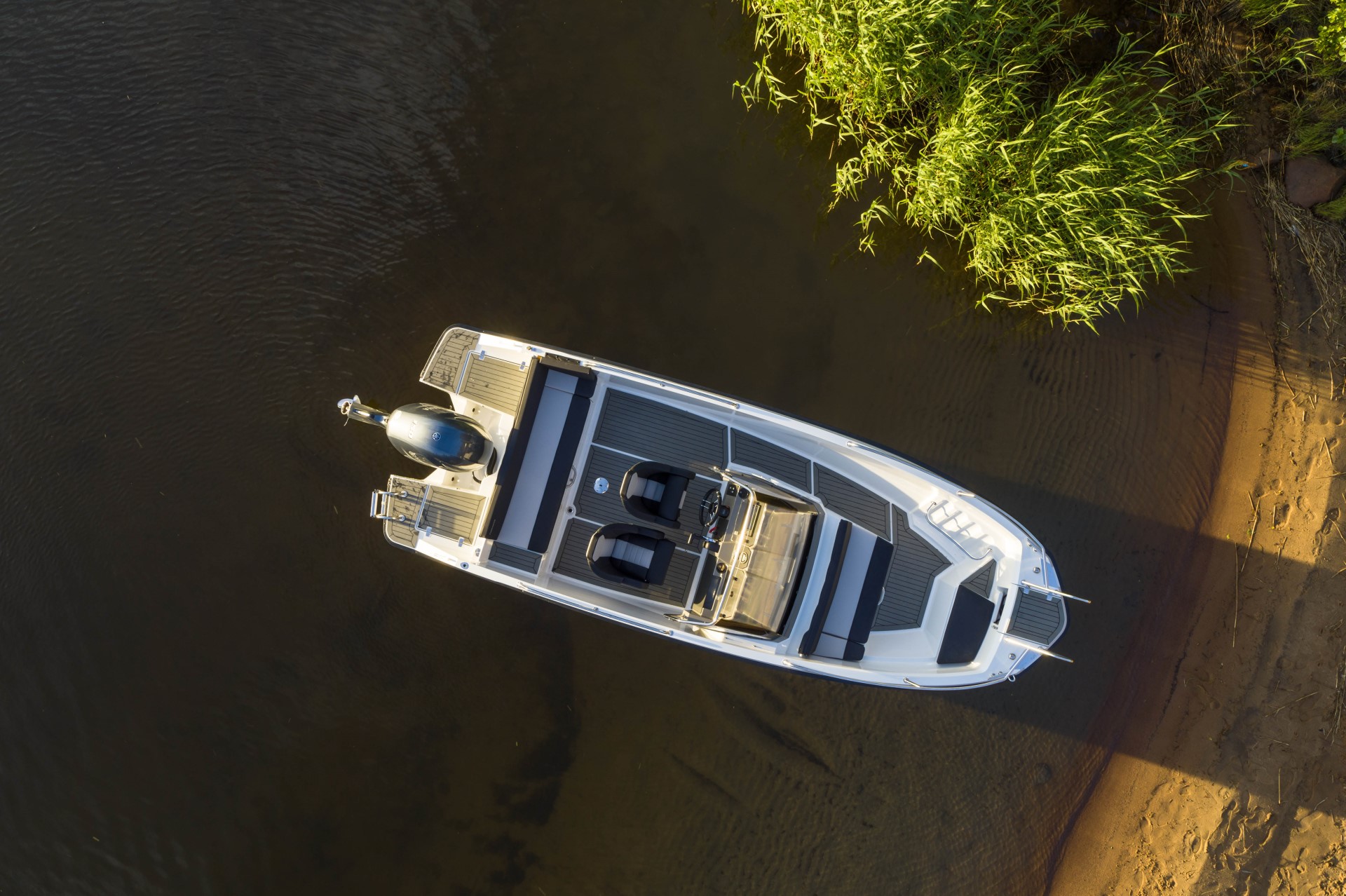 Finnmaster S6 on vene, jossa yhdistyy urheilullisuus ja innovatiivinen muotoiluelämys. Tämä pulpettivene on täydellinen kumppani aurinkoisille kesäpäiville saaristossa. Veneen etuavotilaan on sijoitettu viihtyisä istuinryhmä, jonka voi helposti muunnella aurinkotasoksi. Leveässä pulpetissa on virtaviivainen tuulilasi, joka suojaa mukavasti matkustajia tuulelta kovassakin vauhdissa. Finnmaster S6 on maustettu monilla Smart Design -ratkaisuilla: kuten turvallisilla askelmilla, jotka helpottavat veneeseen nousua, käytännöllisellä lepuuttajan telineellä sekä tilavilla säilytysratkaisuilla, joihin mahtuu kaikki mitä tarvitset päiväretkeä varten. Keulan LED-valojen loiste johtaa sinut kohti loputtomia seikkailuja merellä.