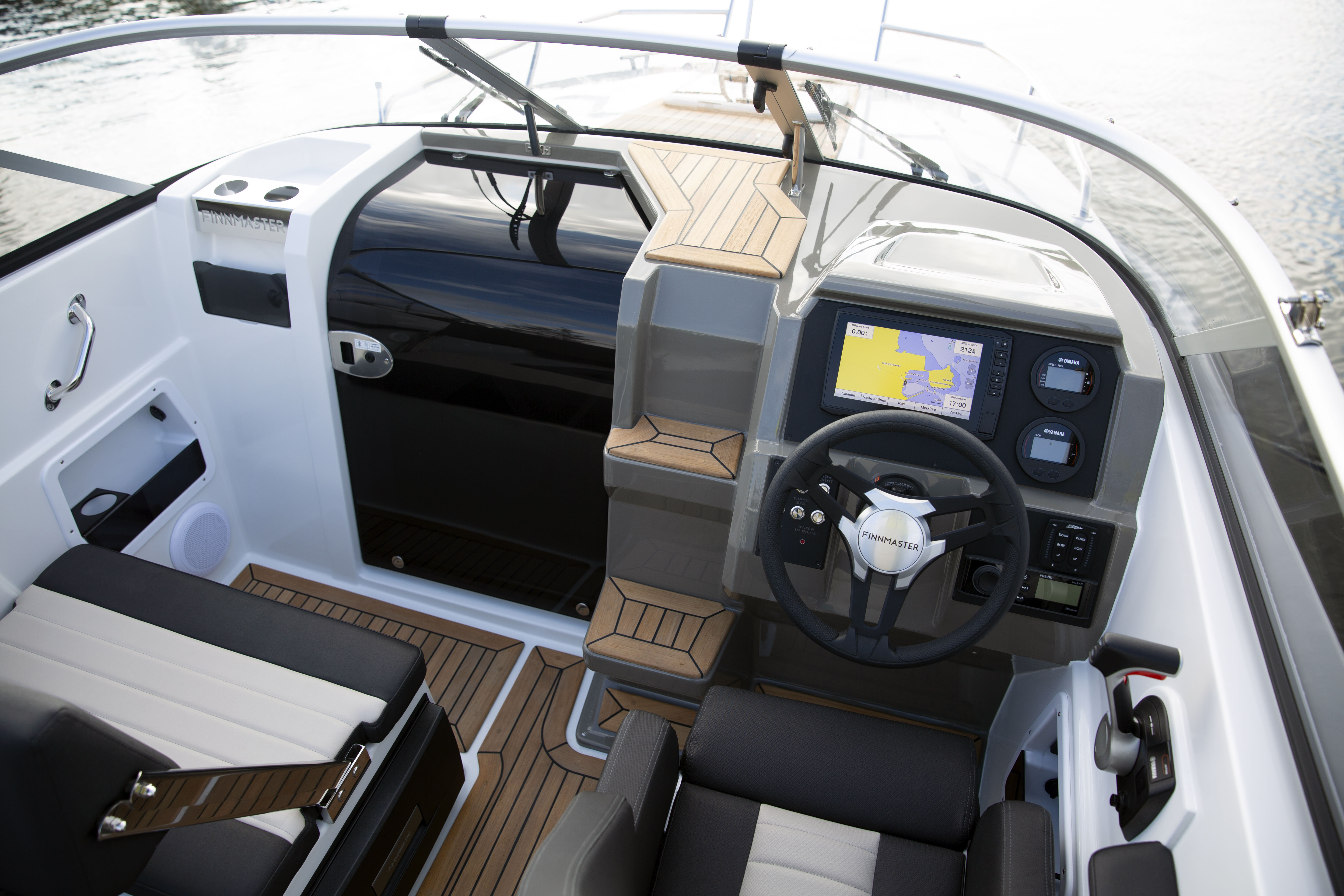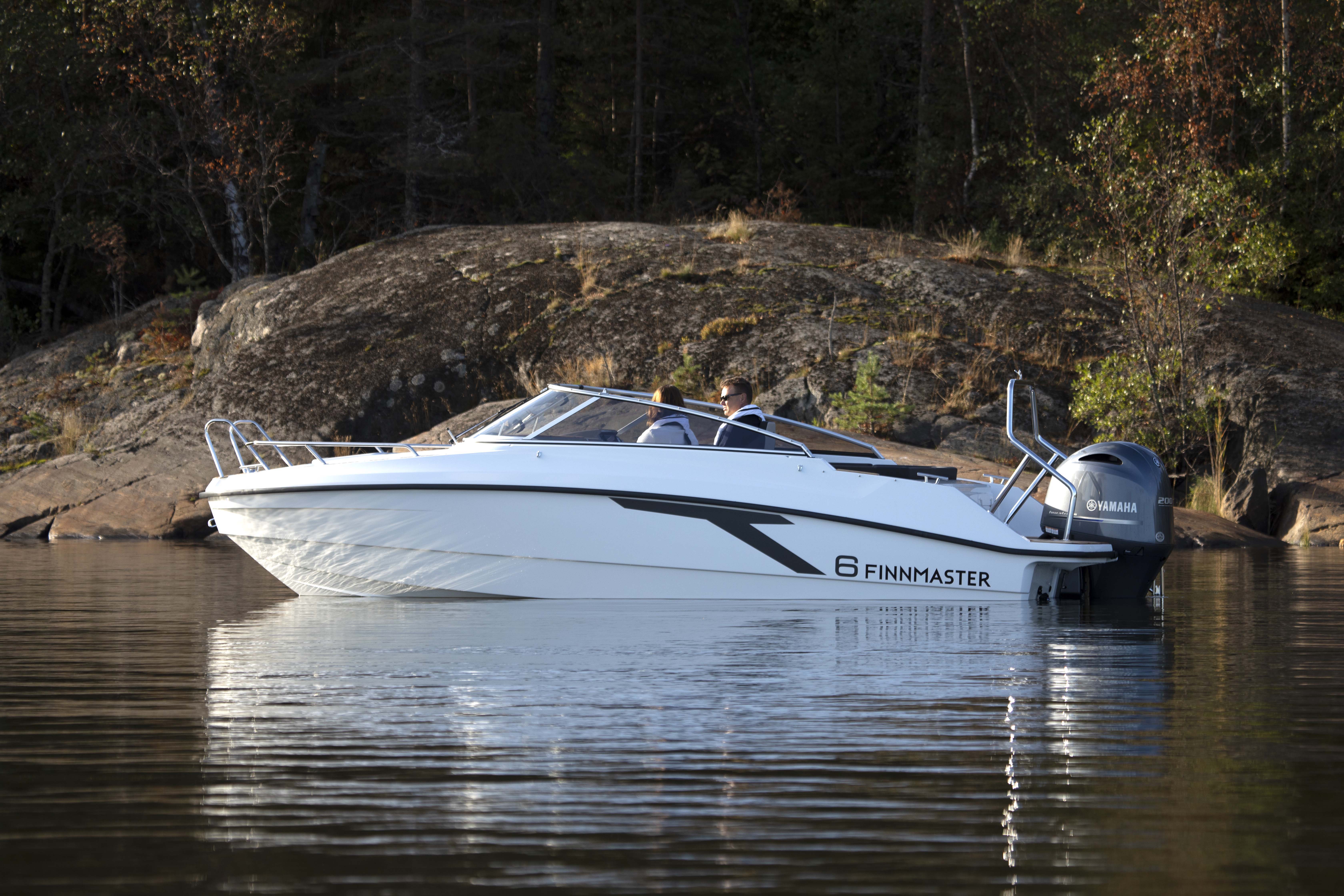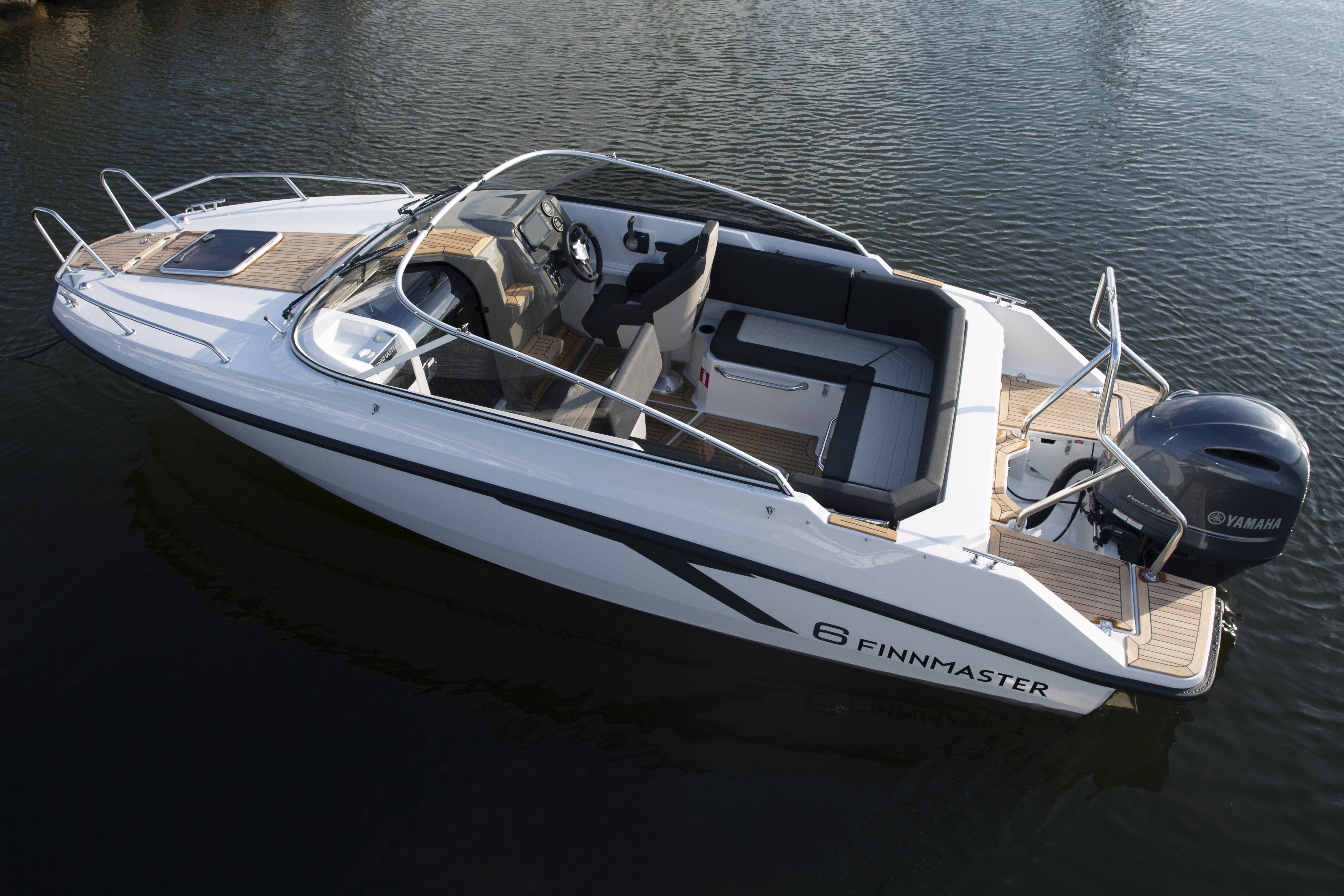 Uudessa Finnmaster T6 -venemallissa yhdistyvät huippumuotoilu ja käytännölliset yksityiskohdat urheilulliseen ulkomuotoon. Veneen tylppä keula, tyylikkäät runkoteippaukset sekä keulan modernit LED-valot viimeistelevät vauhdikkaan kokonaisuuden. Suurempikin joukko mahtuu nauttimaan vauhdin hurmasta isossa avotilassa, joka on helposti muutettavissa aurinkotasoksi. Veneen tukeva runko takaa erinomaiset ajo-ominaisuudet monipuoliseen ja turvalliseen veneilyyn.