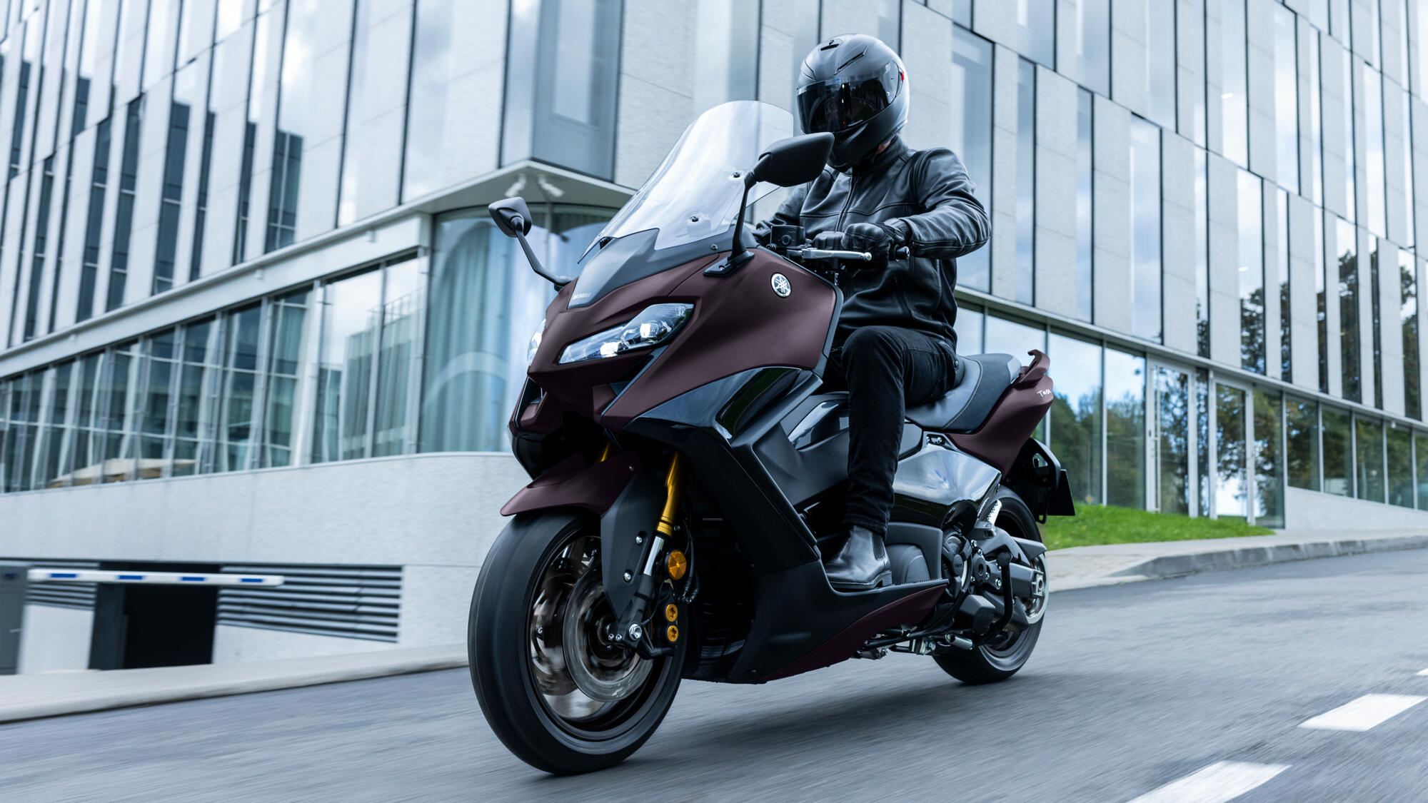 TMAX Tech MAXissa on kompakti muotoilu, pidempi istuin ja pidemmät astinlaudat, joten ajomukavuus on entistä parempi. Aggressiivinen ilme ja aerodynaamiset etusiivet heijastavat supersport-tyylistä ilmettä ja nostavat TMAX Tech MAXin askeleen lähemmäksi moottoripyörämaailmaa. Ensiluokkaiset osat ja upea viimeistely antavat ikoniselle TMAX Tech MAX:ille viimeisen silauksen.